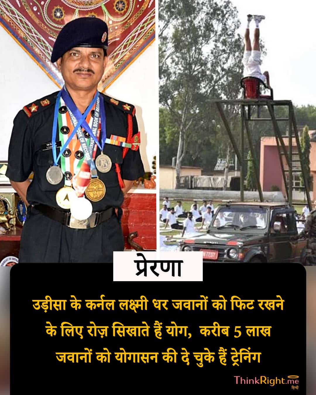 उड़ीसा के भुवनेश्वर के लेफ्टिनेंट कर्नल लक्ष्मी घर भूयान जवानों को फिट और सेहतमंद रखने के लिए रोज़ाना योगासन की ट्रेनिंग देते हैं। उनका कहना है कि जवान देश की रक्षा करते हैं और उनके मानसिक सेहत की सुरक्षा करना बेहद ज़रूरी है।